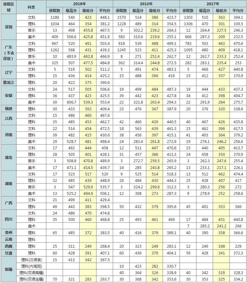 2019年深圳职业技术学院各省录取分数线是多少