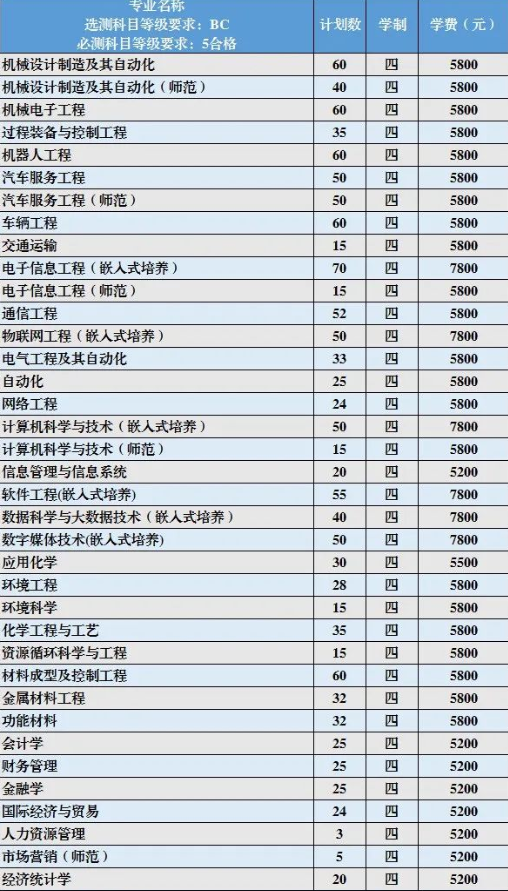 2020年江苏理工学院各专业学费机械设计制造及其自动化、机械电子工程、过程装备与控制工程、机器人工程、汽车服务工程、车辆工程、交通运输专业的学费为5800元。