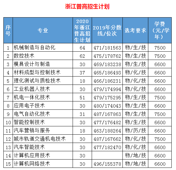 以下是浙江机电职业技术学院2020年的招生计划,供考生参考。