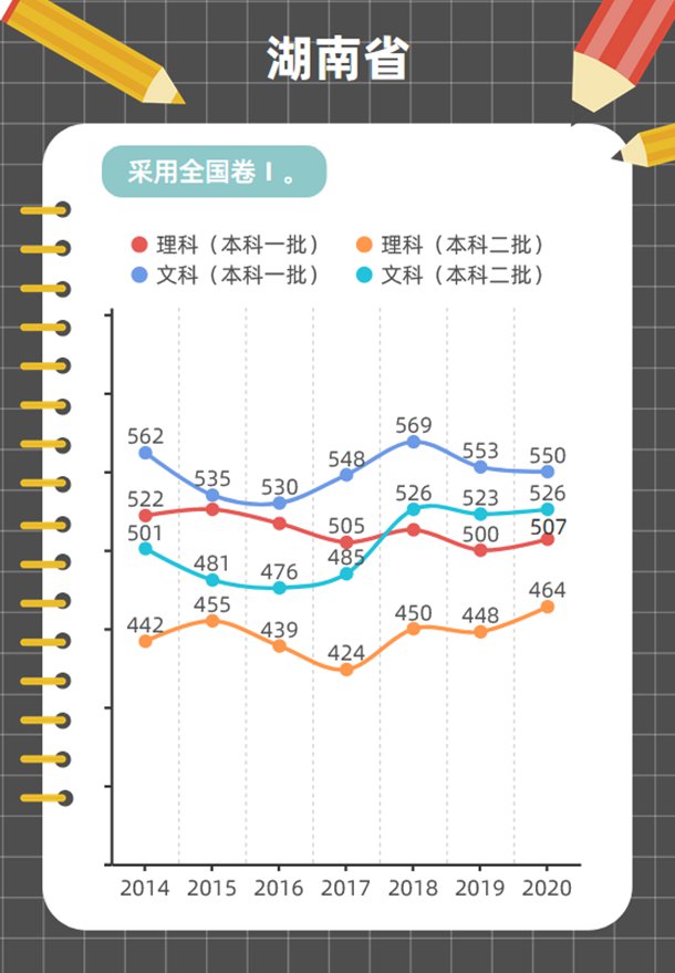 采用全国卷Ⅰ的9个省份中(河北、河南、山西、江西、安徽、湖南、广东、湖北、福建),各地文科一本线除河南省上涨、山西省与去年相同外,都有所下降。而理科一本线则普遍上涨。