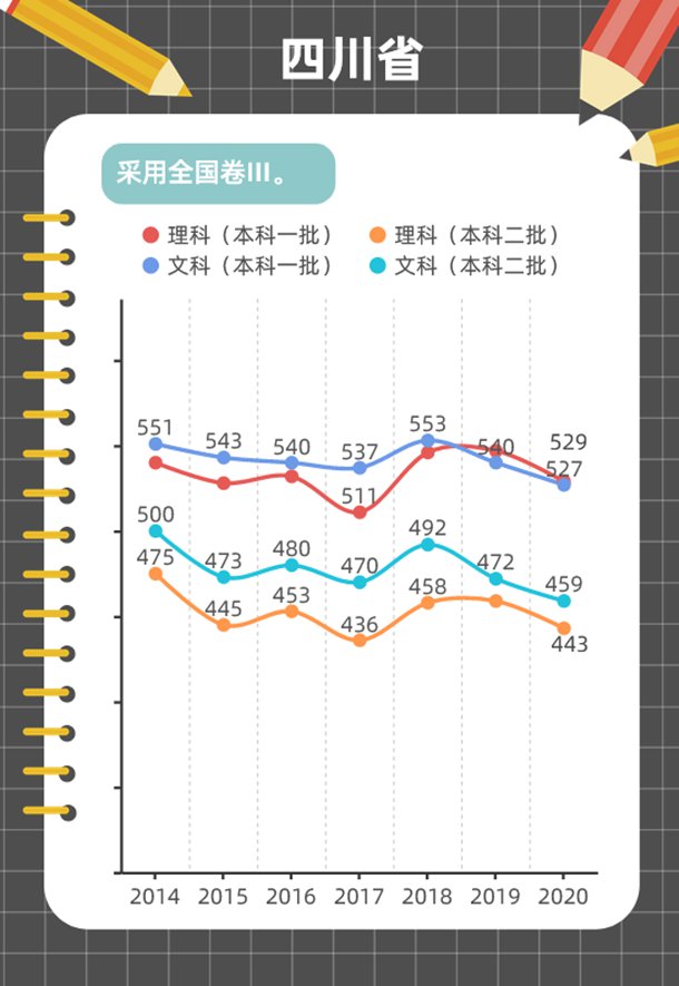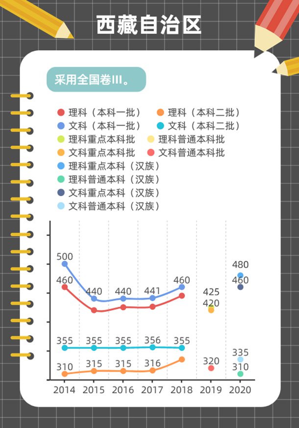 采用全国卷Ⅲ的5个省份中(云南、四川、广西壮族自治区、贵州、西藏自治区),相比去年,文科一本线和理科一本线都有升有降。