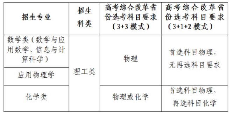 各招生专业、招生科类和高考综合改革省份选考科目要求如下: