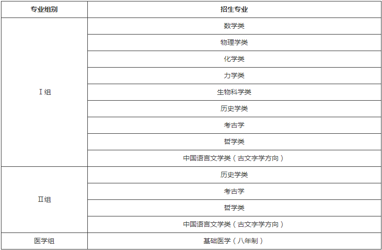 6.Ⅰ组中历史学类、考古学、哲学、中国语言文学类(古文字学方向)专业只录取有志愿考生。