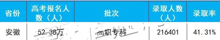 高考录取率是决定一个省(市)高考难度的标准参考系数。录取率越高,相对而言考大学越容易,录取率越低,考大学的难度越高。小编整理了安徽2020年高考专科批录取人数及录取率,来看一下!