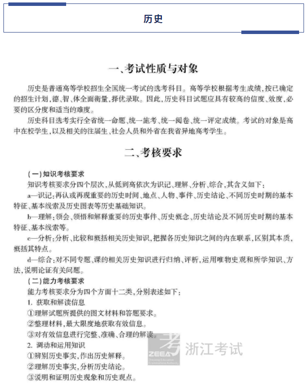 2021浙江高考历史考试说明及大纲 考试范围是什么