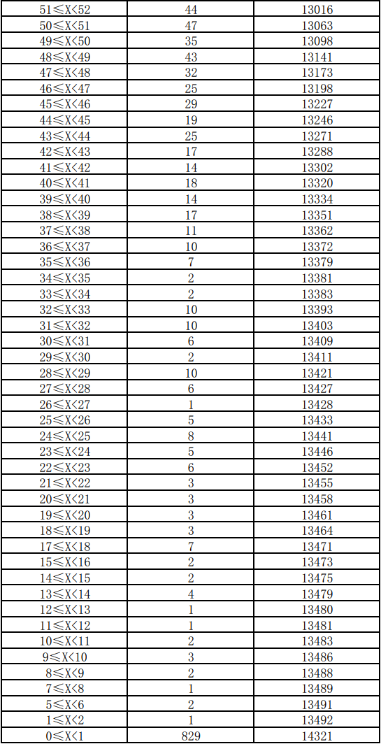 云南省2021年体育类专业统考分数段统计表 各分段人数统计