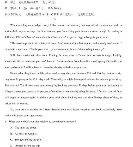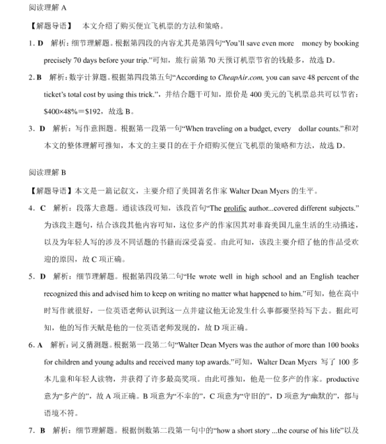 2022年新高考I卷(新高考一卷)英语试卷真题与答案解析