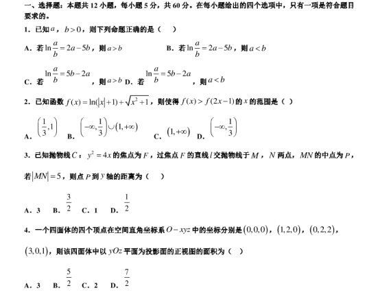 2022年高考全国乙卷数学(文)试卷真题与答案解析