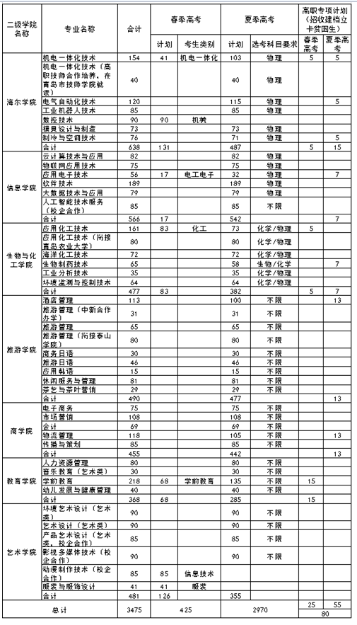 青岛职业技术学院位于山东省青岛市,是经山东省人民政府批准的省属高职院校,为国家示范性高等职业院校。国家级重点专业有机电一体化、商务管理(家电)、物流管理、旅游管理、软件技术、服装设计、市场营销(啤酒)、应用电子技术、应用化工技术。以下是青鸟职业技术学院的招生信息,供考生参考。