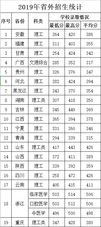 2019年漯河医学高等专科学校各省录取分数线
