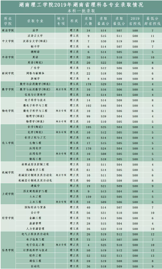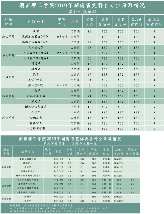 2019年我校在湖南省抛档线为:文科556,理科504,文科音乐学318.9,文科舞蹈学302.8,文科美术类,298.8,文科体育类701,理科体育类637,文科(地方专项)556,理科(地方专项)505。