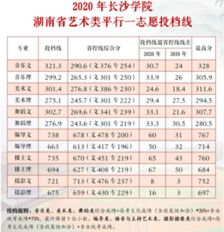 2020长沙学院艺术类录取分数线