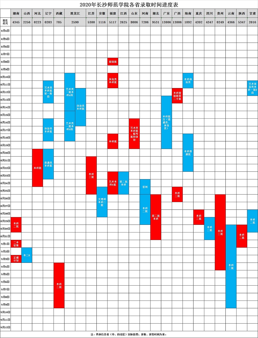2020长沙师范学院录取时间进度表