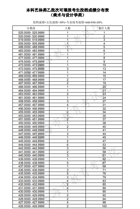 2020上海高考一分一段表 美术与设计学类投档分数排名
