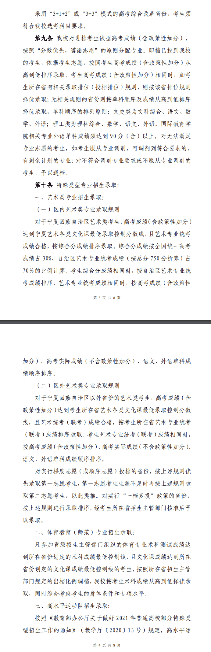 宁夏大学2021年普通本科招生章程 时间:2021-05-06 00:01 招生简章 点击查看:宁夏大学2021年普通本科招生章程.pdf文章来源(官网发布地址):http://zs.nxu.edu.cn/ningxiadaxue2021nianputongbenkezhaoshengzhangcheng.pdf官网发布缓存图(部分):