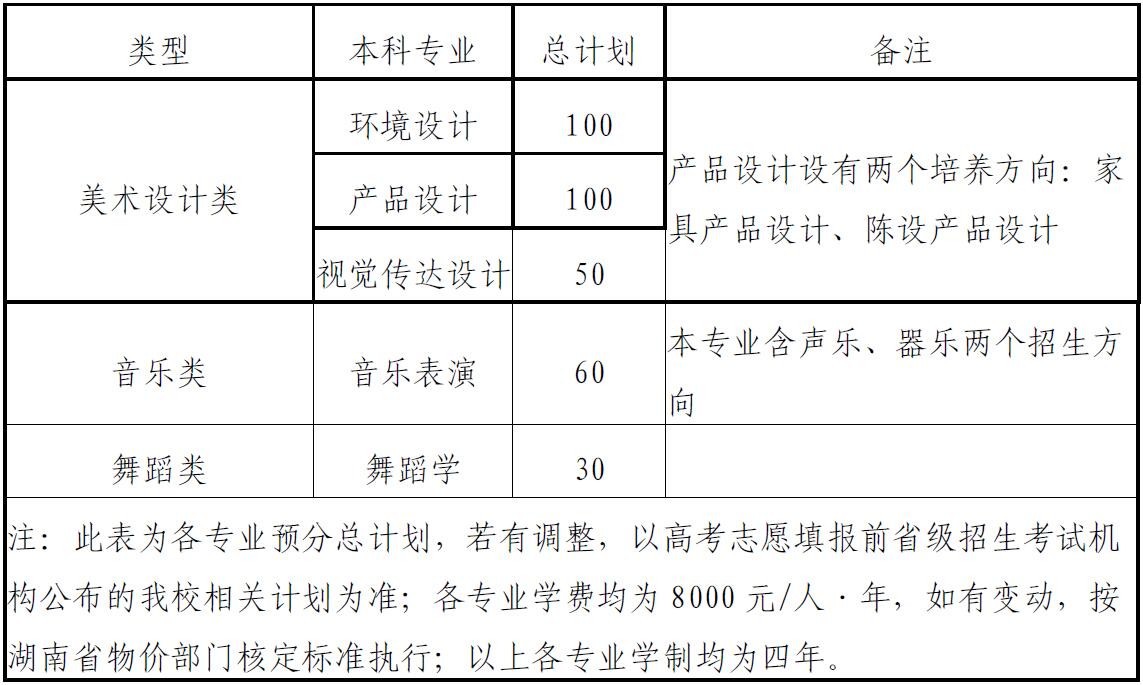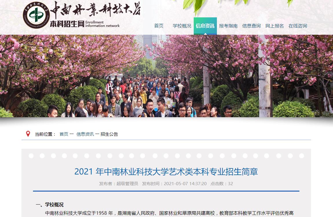 2021年中南林业科技大学艺术类本科专业招生简章