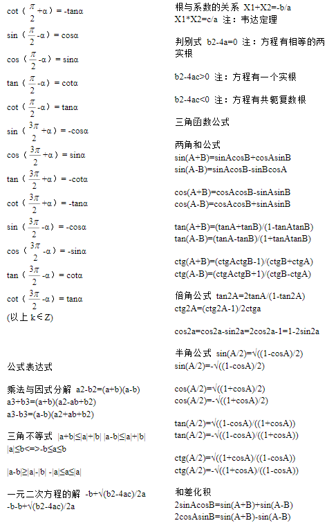 三角函数包括两个部分:三角与三角函数、解三角形分析。重点的知识点包括:任意角的三角函数;同角三角函数的基本关系式;诱导公式;三角函数的图象及其变换;三角函数的性质及其应用;三角函数的求值与化简;正弦、余弦定理;解三角形及其综。