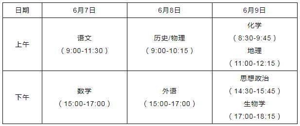 2021湖北省高考具体时间安排