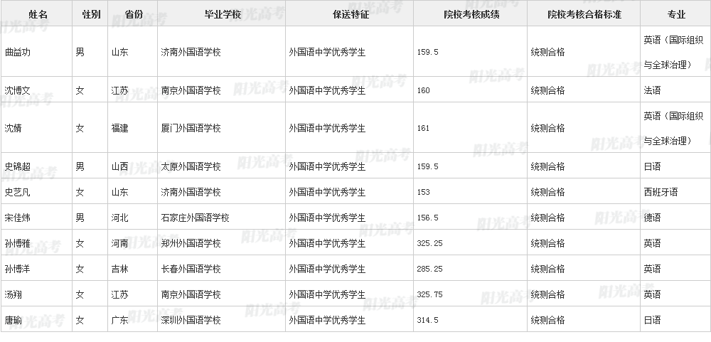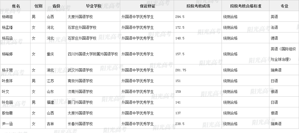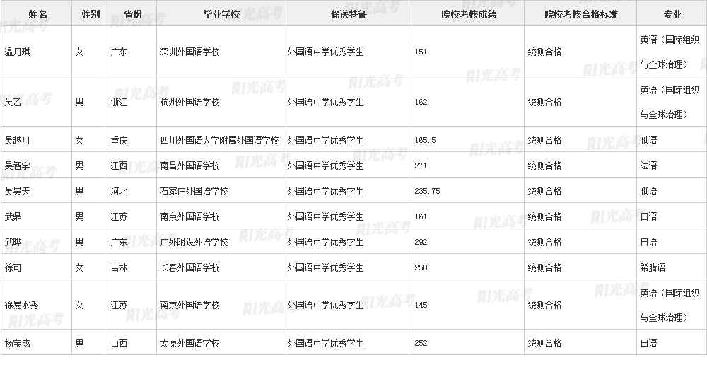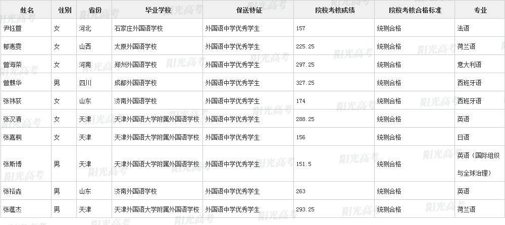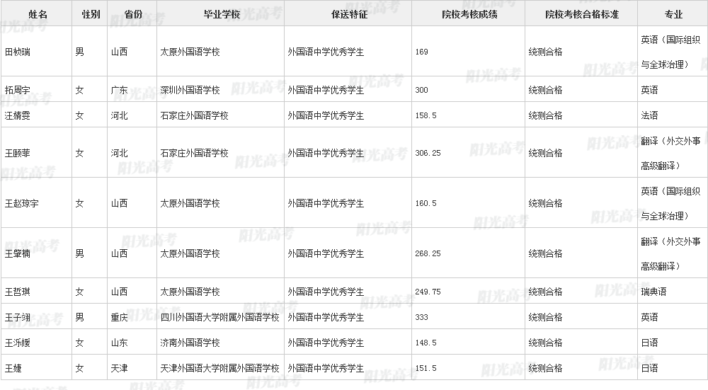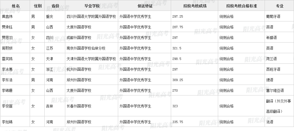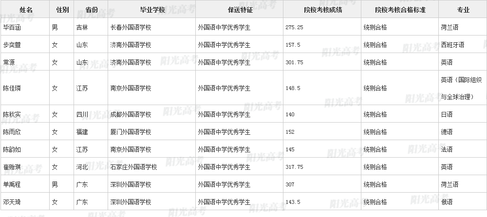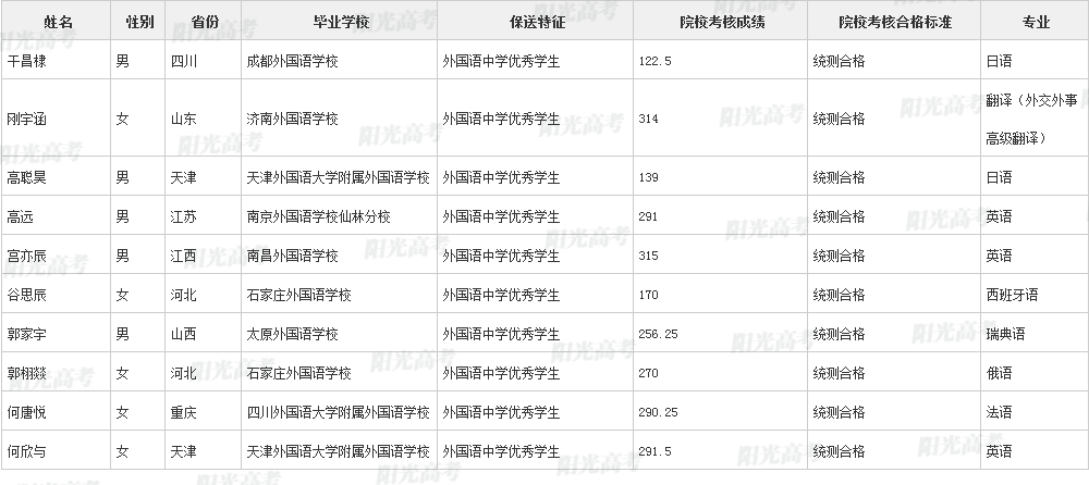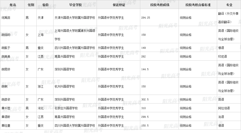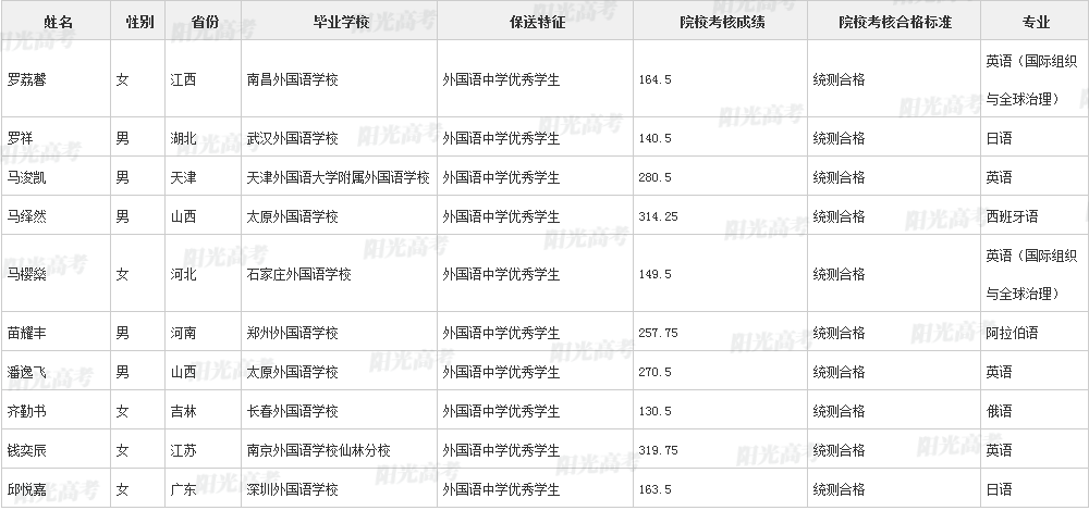 北京外国语大学2021年保送生拟录取名单声明:本文信息来源于阳光高考,由雷火在线整理编辑,如有侵权,请及时联系管理员删除。