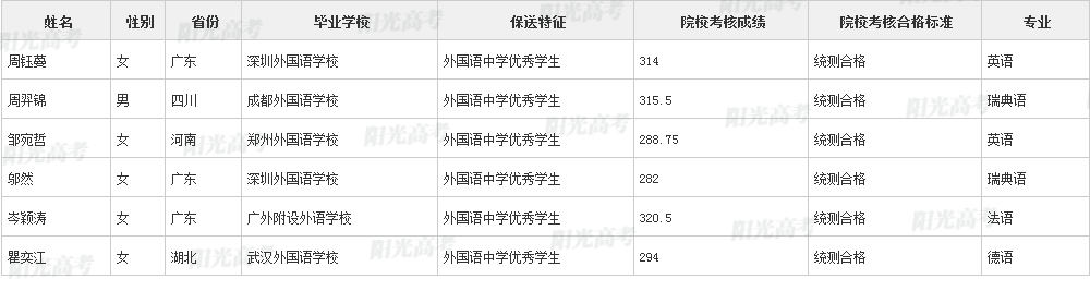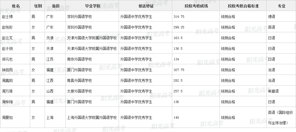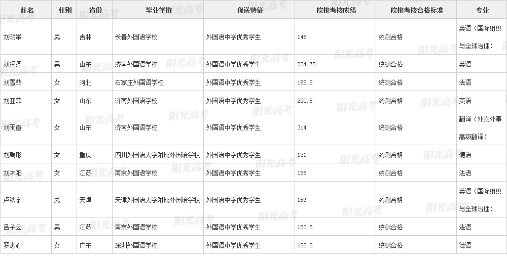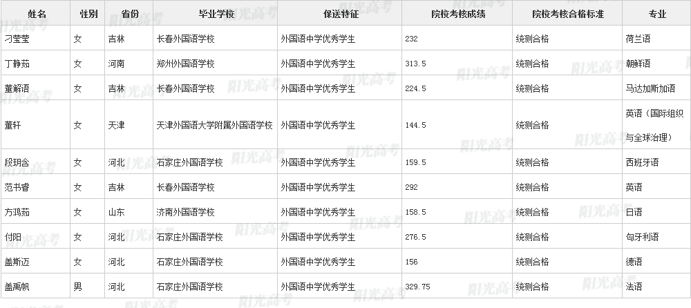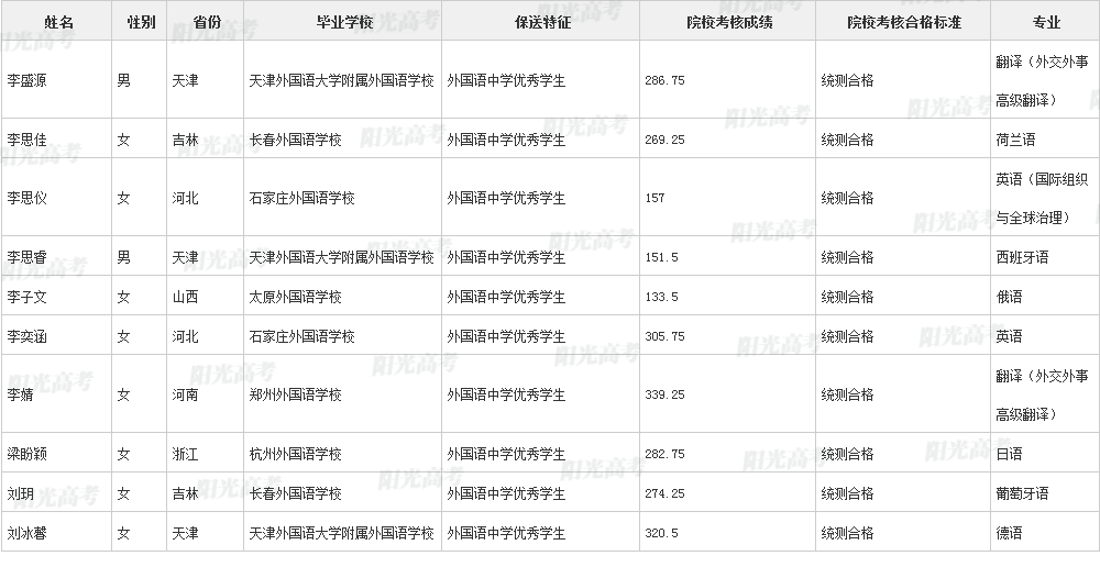 北京外国语大学2021年保送生拟录取名单公示