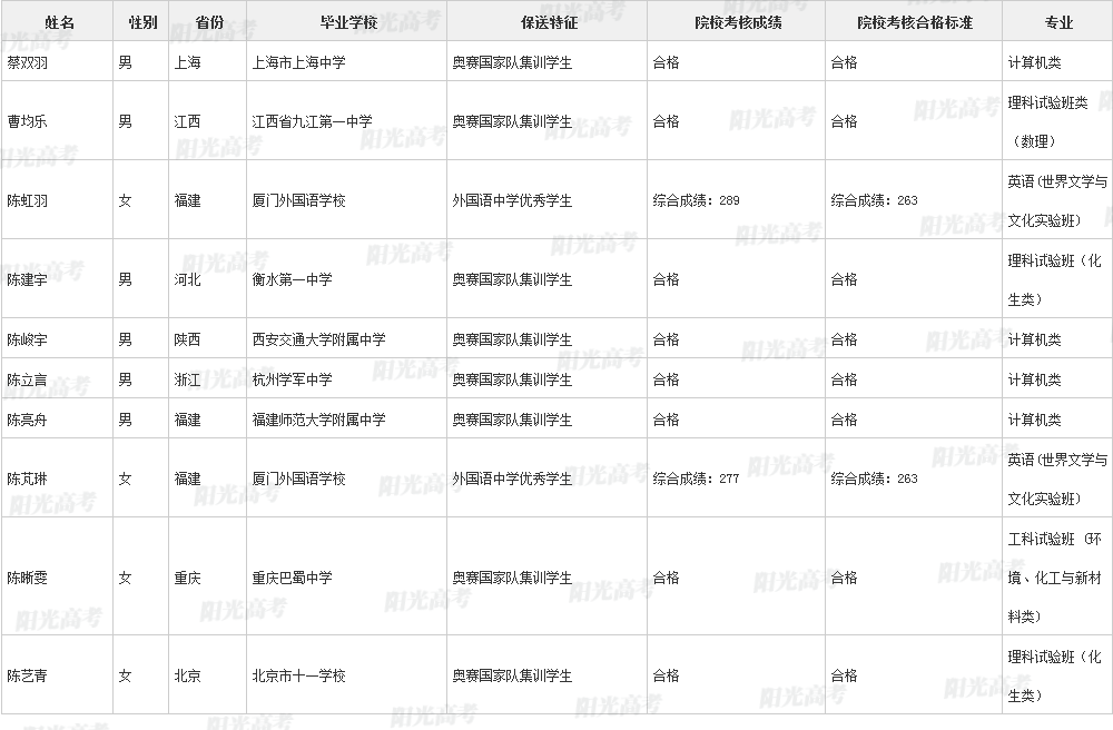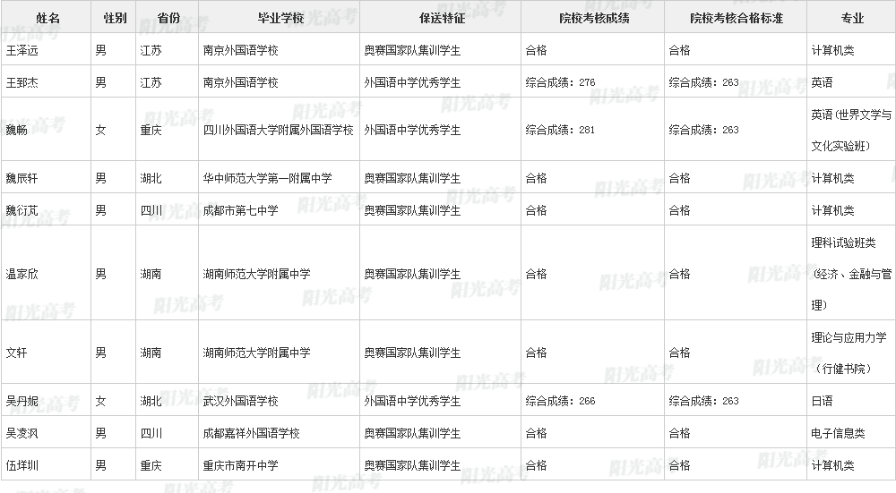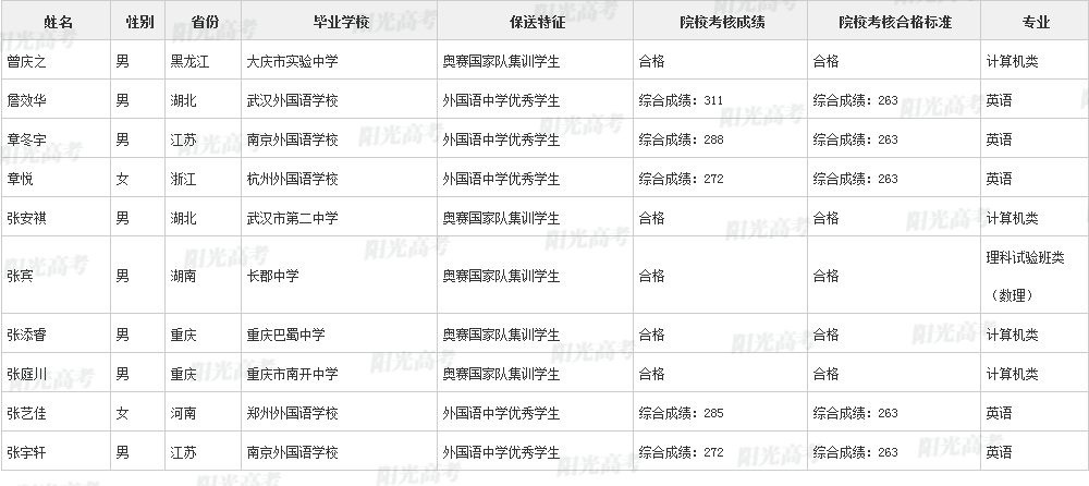 清华大学2021年保送生拟录取名单声明:本文信息来源于阳光高考,由雷火在线整理编辑,如有侵权,请及时联系管理员删除。