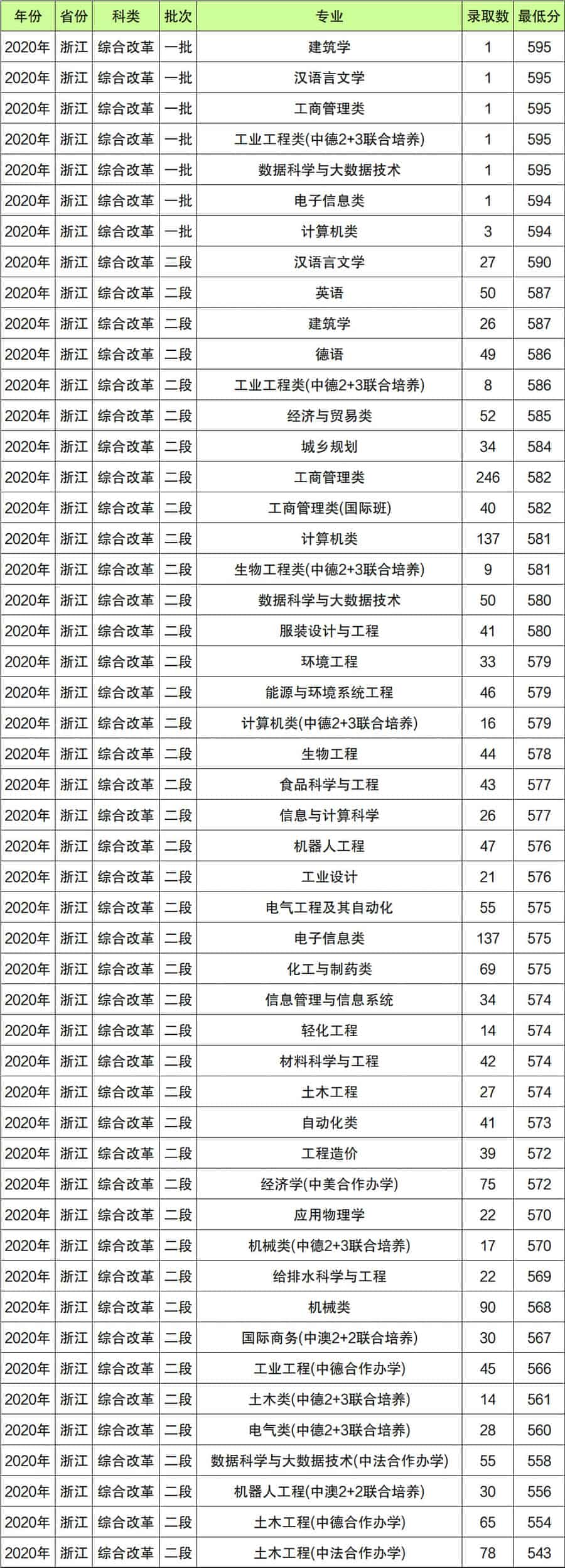 最后,老师帮大家整理了浙江科技学院各个专业在省内的最低录取分数线和录取人数,对它感兴趣的同学们可以参考哦!