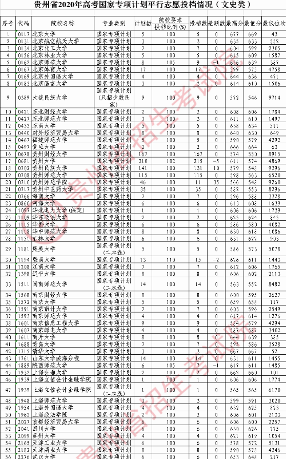 目前,同学们和广大家长朋友们非常关心的2020年贵州高考国家专项计划录取最低分(文科)已经公布。下面小编为大家详细介绍一下,供大家参考。