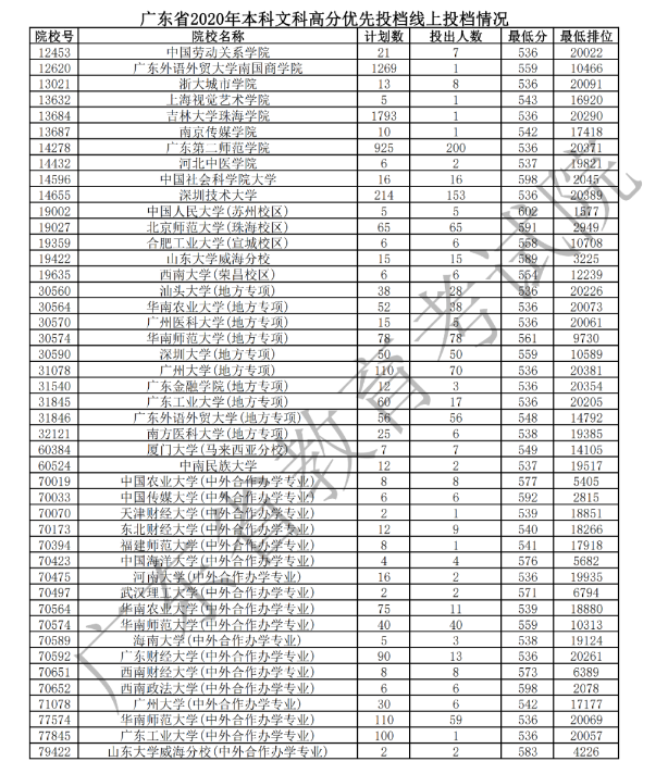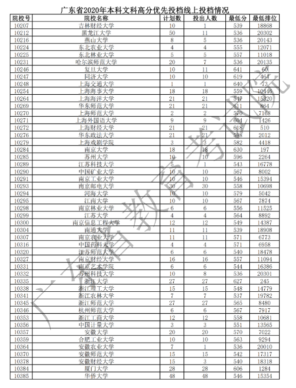 2020广东本科文科高分优先投档最低分 时间:2020-08-17 09:18 分数线 8月16 日,广东省招生办对本科批次高分优先投档线上考生开始投档,共投出88876人,其中,文科投出17126人,理科投出71750人。下面小编为大家详细介绍一下,供大家参考。广东本科文科高分优先投档最低分