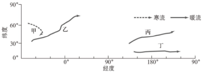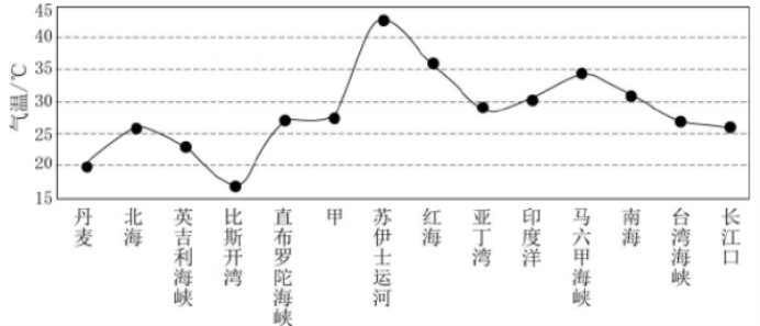 某邮轮从丹麦出发开往中国。图6为该邮轮途经各地的日平均气温示意图。其中甲是某著名海域。读图,回答第9、10题。