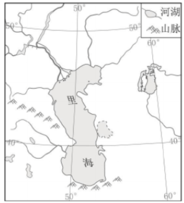图7为里海及周边区域示意图。读图,回答第11、12题。