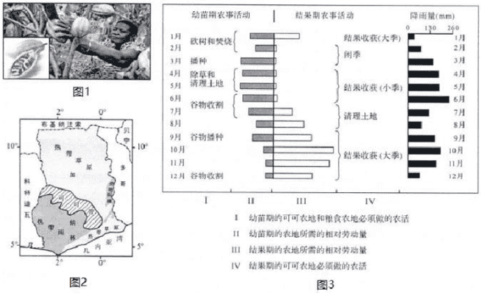 (3)每年9月到次年1月,加纳北部热带草原区的农民大规模移动到可可带,分析其原因。
