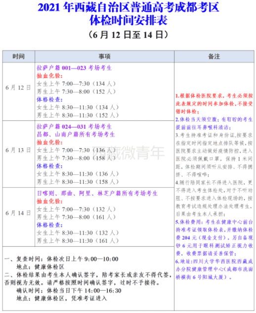 2021年西藏普通高考成都考区体检时间安排表公布,下面是具体时间安排,欢迎阅读。