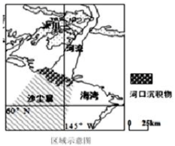 下图为某区域示意图,近年来卫星多次监测到海湾上空出现沙尘暴,读图完成9~11题。