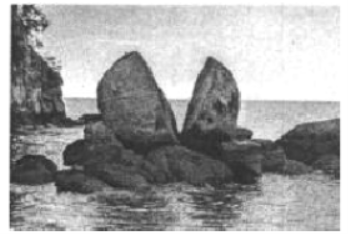 位于新西兰南岛的亚伯塔斯曼国家公园面积约225平方千米,最高峰海拔1156米。某游客在“五一”劳动节期间前往该公园进行徒步、自驾相结合的深度体验游。下图为该游客在公园内拍摄的一处景点照片,该景点位于海岸悬崖旁,由一形如苹果的巨型球状花岗岩从中间分裂为两瓣而成,被称为分裂苹果岩。据此完成12~14题。