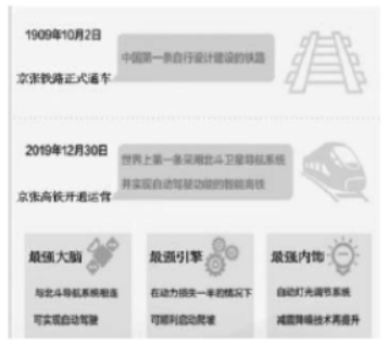 铁开通运营。同时,崇礼铁路、大张高铁、张呼高铁也投入使用,京冀晋蒙的时空距离大 为缩短。“最强大脑”实现智能运行、“最强引擎”保障爬坡应急、“最强内饰”改善旅客体验 ......百余年来,中国铁路从未停歇自主创新 的脚步,如今的智能京张树起中国高铁的新 标杆。由此可见
