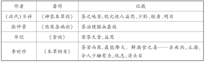 15.下表为古代中国部分医学典籍中有关茶叶的记载。这些记载