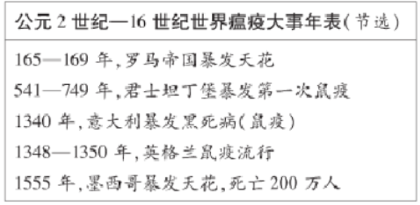 20.由下图中的大事年表可知,鼠疫与天花的暴发与流行