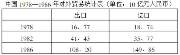 14.下表为《剑桥中华人民共和国史》中关于中国现代对外贸易(局部)情况的汇总。下列项中属于推动这一时期对外贸易发展的因素的是