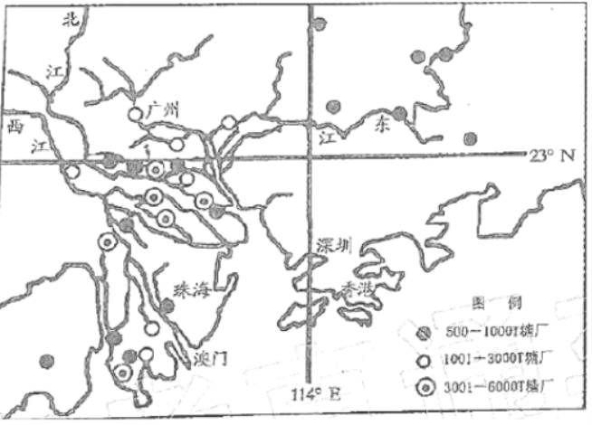7. 图示地区大型制糖厂选址主要考虑