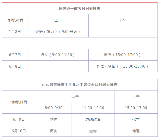 6月8日9:00至11:30文科综合/理科综合;15:00至17:00外语,有外语听力测试内容的应安排在外语笔试考试开始前进行。