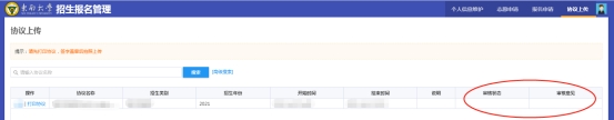 8、我校核查无误后,审核状态为“通过”即为完成签订;若审核状态为“退回”,请及时根据审核意见修改重新上传。