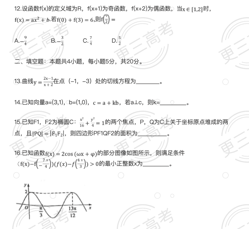 2021年云南理科数学真题试卷