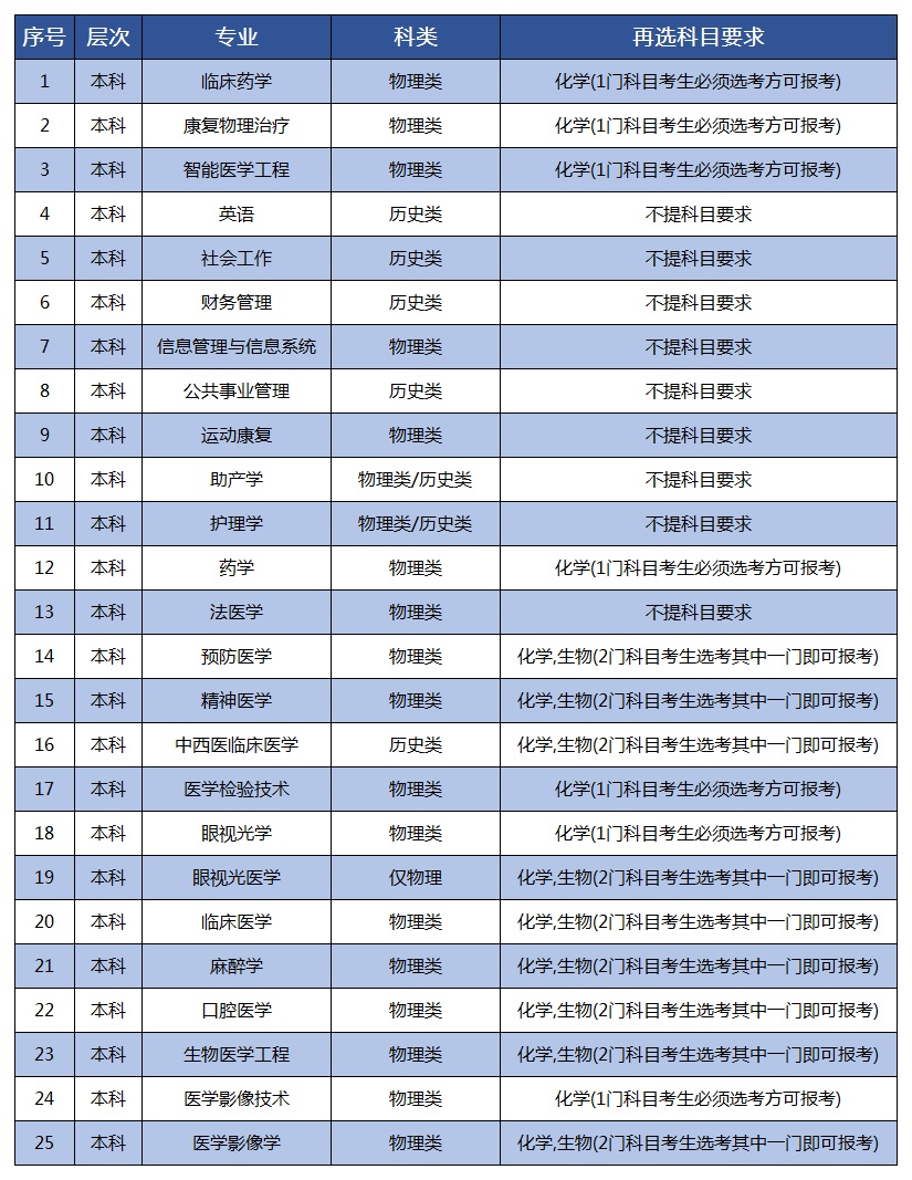 川北医学院2021年高考改革省份选考科目要求(3+1+2模式)