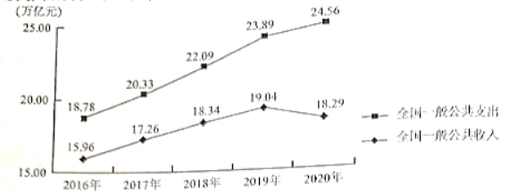 14.图2是我国2016~2020年全国⼀般公共收⼊与⽀出变化⾛势。