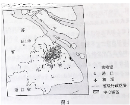 (2)据图描述该品牌咖啡馆在上海的空间分布特征。(4分)