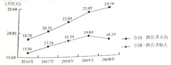 14.图2是我国2016~2020年全国⼀般公共收⼊与⽀出变化⾛势。