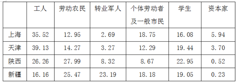 表2职工社会出身情况表 (%)