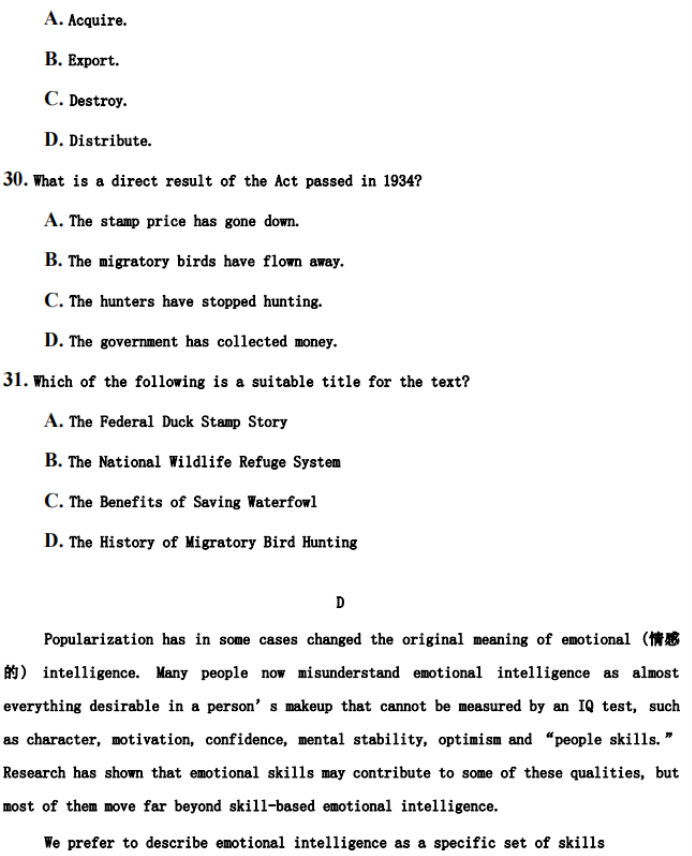 湖北英语试题