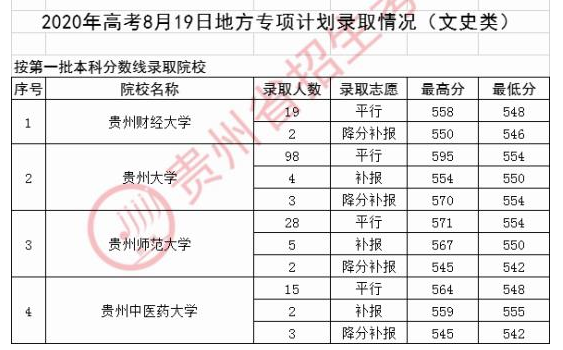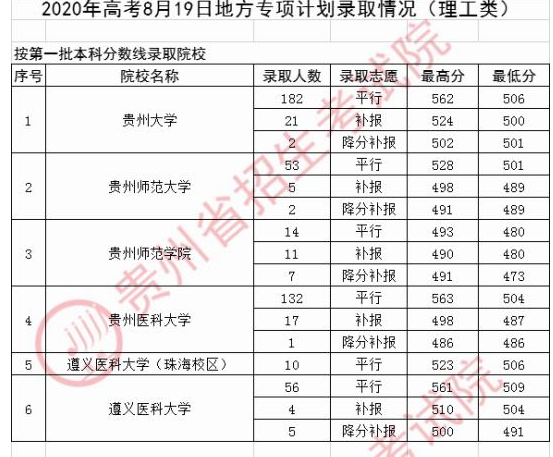 目前,同学们和广大家长朋友们非常关注的贵州省2020年地方专项计划投档情况已经公布。下面小编为大家详细介绍一下,供大家参考。