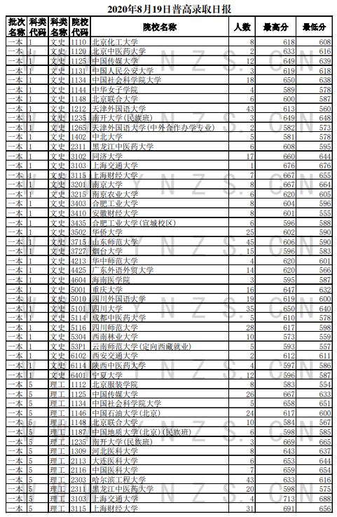 2020云南高考一本录取最低分